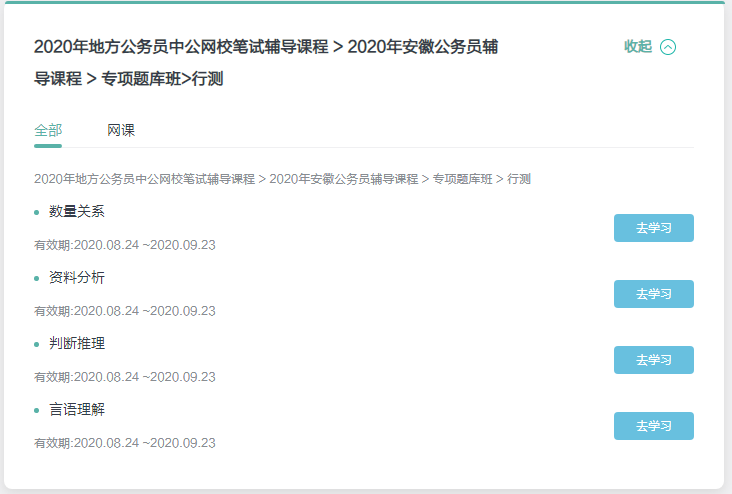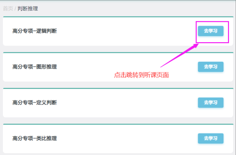 (3)按照目錄進(jìn)行選擇,點(diǎn)擊“去學(xué)習(xí)”,可進(jìn)入對(duì)應(yīng)該科目的聽課頁(yè)面。