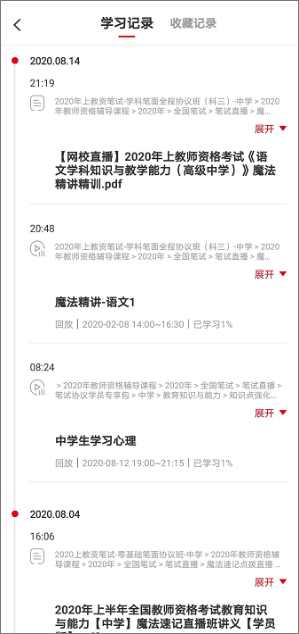 ? 查詢(xún)聽(tīng)課記錄:【學(xué)習(xí)】模塊上方顯示最近一次聽(tīng)課記錄,單擊“學(xué)習(xí)記錄”可查看歷史聽(tīng)課記錄;