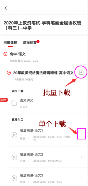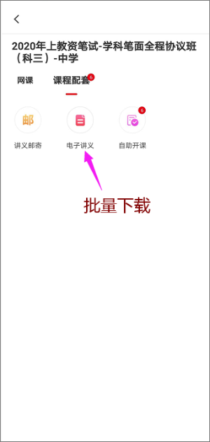 ? 講義下載:展開(kāi)課程目錄,可找對(duì)講義文件夾下載對(duì)應(yīng)電子講義;通過(guò)【課程配套】電子講義,可以批量下載配套講義。