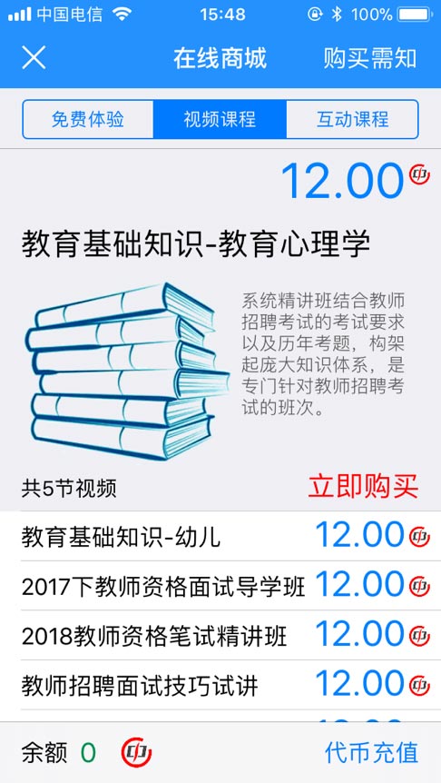 用戶可以通過(guò)App內(nèi)購(gòu)來(lái)獲取中公網(wǎng)校代幣并自助購(gòu)買(mǎi)課程。