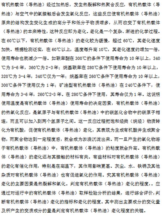 1、系統(tǒng)注油時(shí),有機(jī)熱載體為低溫狀態(tài),不存在老化情況;