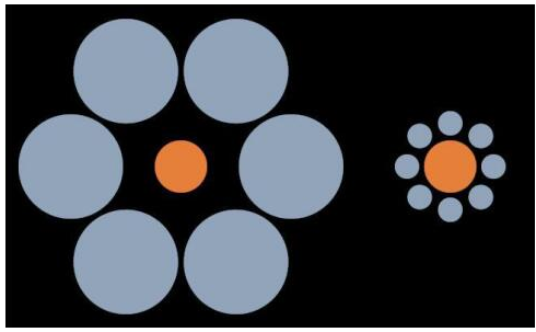艾賓浩斯錯(cuò)覺(jué)是一種對(duì)實(shí)際大小知覺(jué)上的錯(cuò)視。在最的錯(cuò)覺(jué)圖中,兩個(gè)完全相同大小的圓放置在一張圖上,其中一個(gè)圍繞較大的圓,另一個(gè)圍繞較小的圓;圍繞大圓的圓看起來(lái)會(huì)比圍繞小圓的圓還要小。