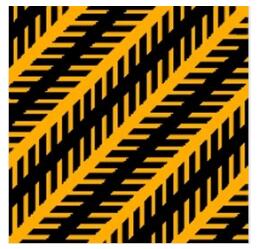 佐爾拉錯(cuò)覺(jué)是指一些平行線(xiàn)由于一些附加線(xiàn)段的影響而看成不平行的現(xiàn)象。對(duì)于這類(lèi)幾何錯(cuò)覺(jué),神經(jīng)生理學(xué)理論認(rèn)為,當(dāng)兩個(gè)輪廓彼此接近時(shí),它們?cè)谝暰W(wǎng)膜上的投影也彼此接近,造成視網(wǎng)膜上的神經(jīng)細(xì)胞間存在互相抑制的現(xiàn)象出現(xiàn),進(jìn)而引起幾何圖形形狀和方向的錯(cuò)覺(jué)。但其實(shí)較粗的黃線(xiàn)是平行的。