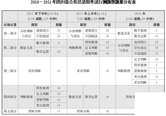 1.總題量為20道。和2010年相比,常識(shí)判斷部分的考查有了很大的調(diào)整,不僅題量增加了15道,更是將其從判斷推理當(dāng)中抽取出來(lái)作為一大專項(xiàng)單獨(dú)考查,體現(xiàn)了四川省公務(wù)員考試命題的日益完善。