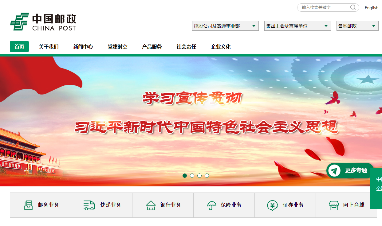 中國郵政招聘官網是http://www.chinapost.com.cn/,官網見下圖所示: