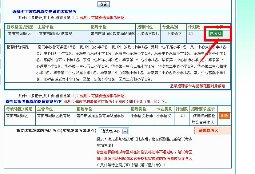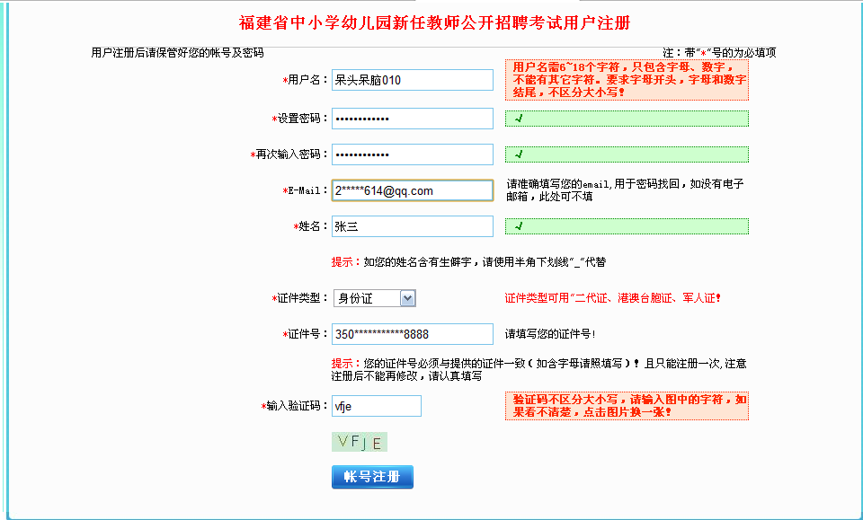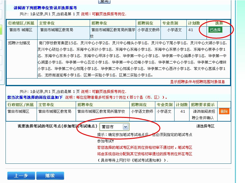 每人(按一個身份證號)只能選擇1個招聘崗位(即1個縣〈市、區(qū)〉)招聘考錄單位,注意每個身份證號只能注冊一個賬號,且考生應牢記該賬號和密碼,避免后期由于遺忘賬號造成準考證無法打印或成績無法查詢。