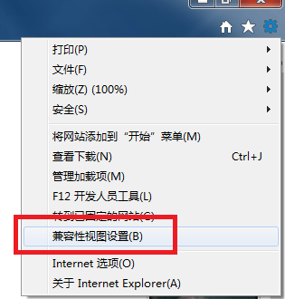 以IE11為例:選擇IE11瀏覽器的工具選項,然后選擇兼容性視圖設(shè)置,如下圖所示