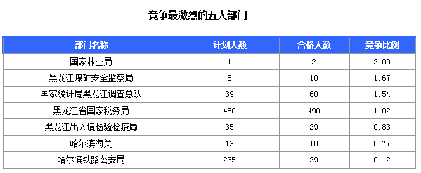 截止15日17時(shí),招錄比例的職位為黑龍江省國(guó)家稅務(wù)局齊齊哈爾市富拉爾基區(qū)國(guó)家稅務(wù)局科員一職,招錄2人,通過人數(shù)48人,競(jìng)爭(zhēng)比24:1。