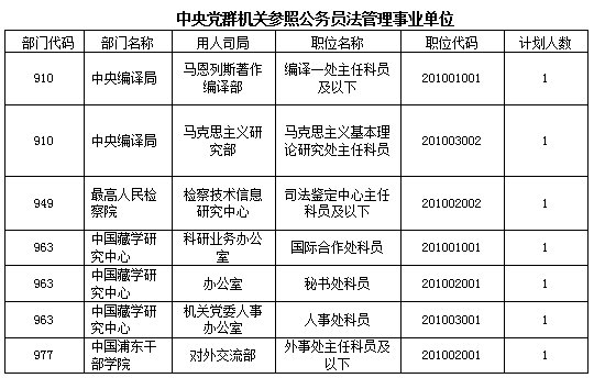 中公網(wǎng)校專家分析,參照公務(wù)員法管理事業(yè)單位無人報(bào)考職位主要集中在銀監(jiān)會(huì)等;中央國(guó)家行政機(jī)關(guān)省級(jí)以下直屬機(jī)構(gòu)無人報(bào)考職位主要集中在海關(guān)、鐵路公安等;中央國(guó)家行政機(jī)關(guān)(本級(jí))無人報(bào)考職位主要集中在科技部、公安部、國(guó)稅總局等;中央黨群機(jī)關(guān)無人報(bào)考職位主要集中在中宣部、全國(guó)工商聯(lián)等;中央黨群機(jī)關(guān)參照公務(wù)員法管理事業(yè)單位無人報(bào)考職位主要集中在中央編譯局、中國(guó)藏學(xué)研究中心等;中央黨群機(jī)關(guān)參照公務(wù)員法管理人民團(tuán)體和群眾團(tuán)體無人報(bào)考職位只有三個(gè),分別來自中國(guó)科協(xié)、中國(guó)文聯(lián)、中國(guó)人民對(duì)外友好協(xié)會(huì)。