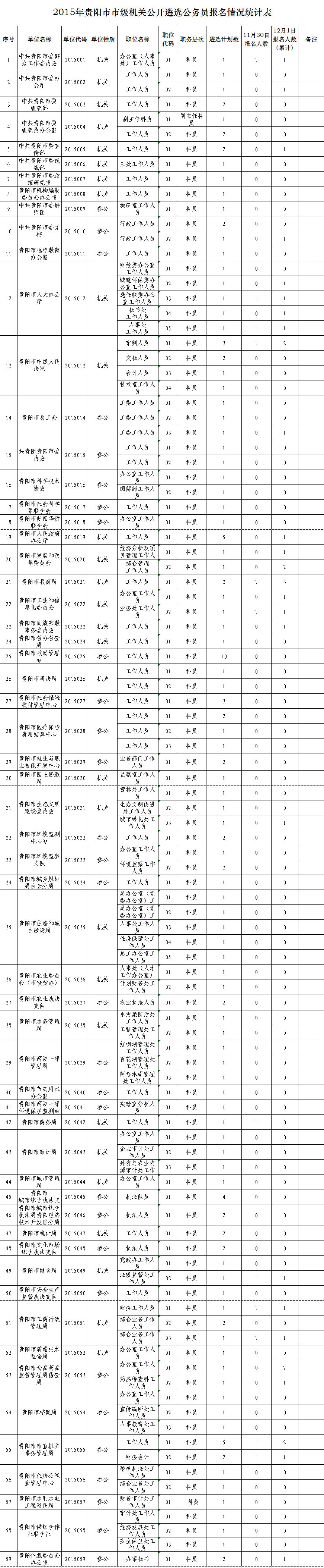 2015貴州貴陽市級機(jī)關(guān)公務(wù)員遴選報名情況統(tǒng)計表(12月1日)
