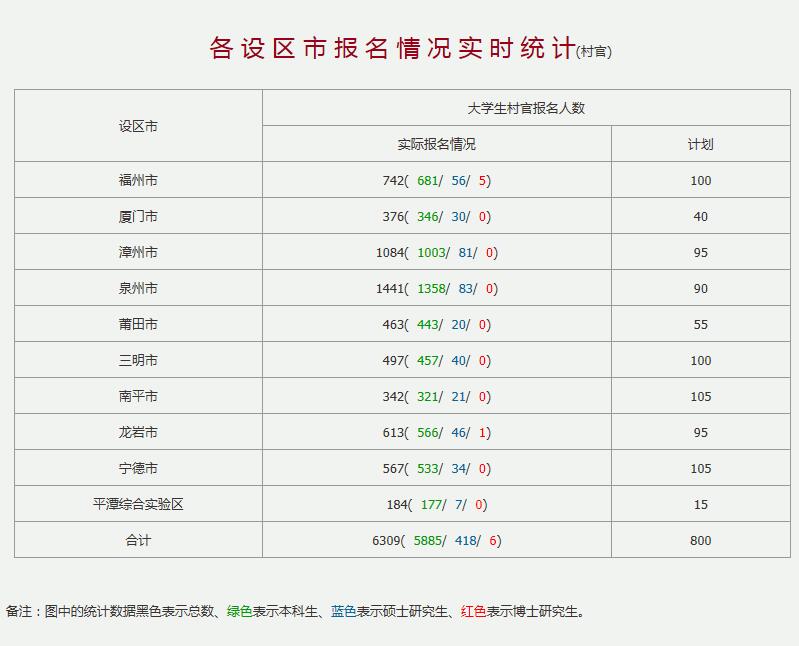 2016福建大學(xué)生村官考試報名情況(截止12月7日15時20分)