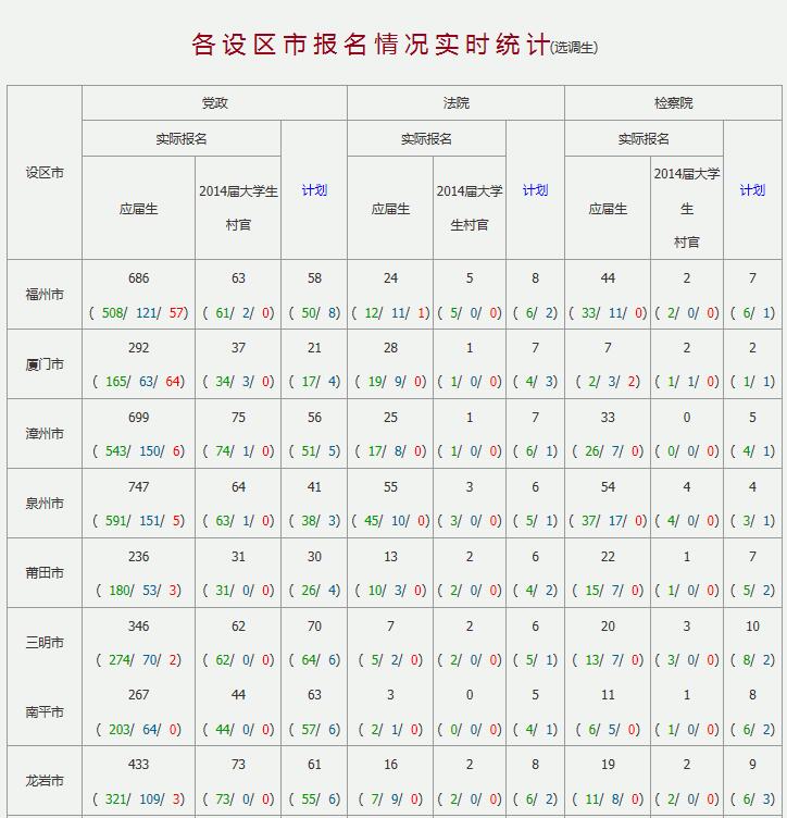 2016福建選調(diào)生考試報名情況(截止12月9日10時30分)
