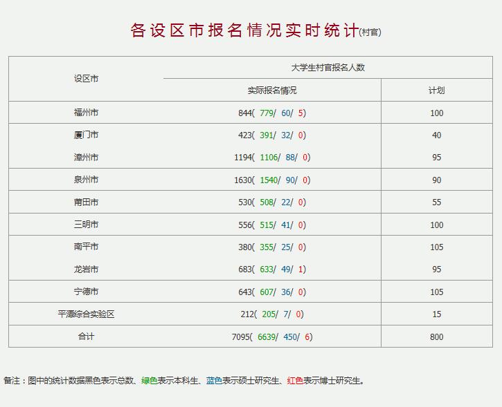 2016福建大學(xué)生村官考試報(bào)名情況(截止12月9日10時(shí)30分)