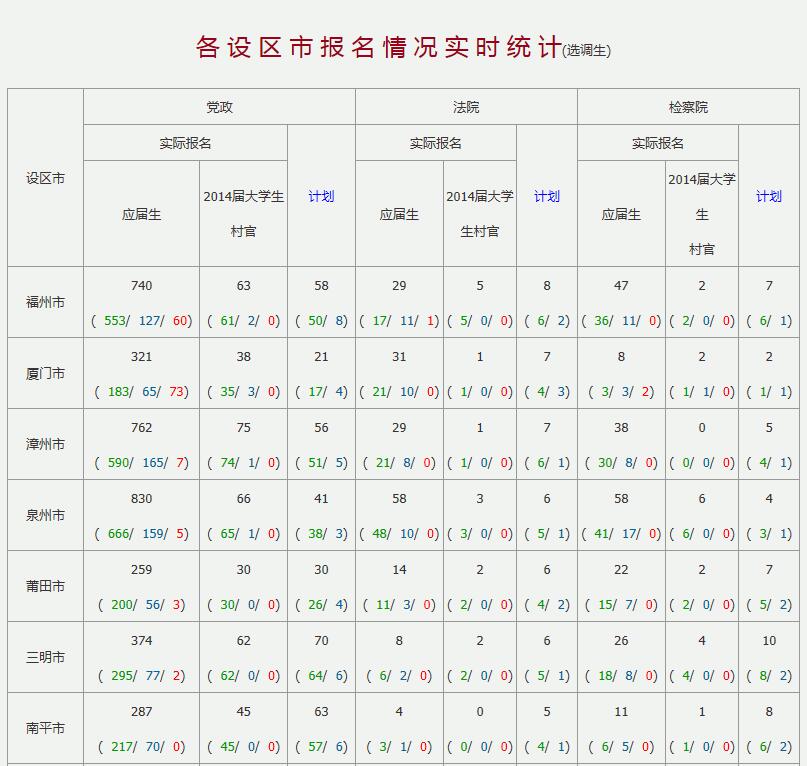 2016福建選調(diào)生考試報名情況(截止12月11日13時45分時)