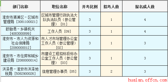 淮安市報(bào)名競爭最激烈的十大職位