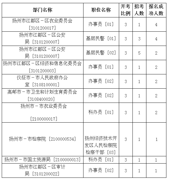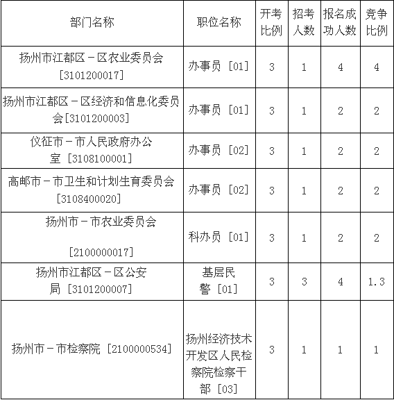 揚(yáng)州市報(bào)名競(jìng)爭(zhēng)最激烈的十大職位