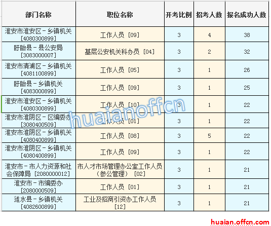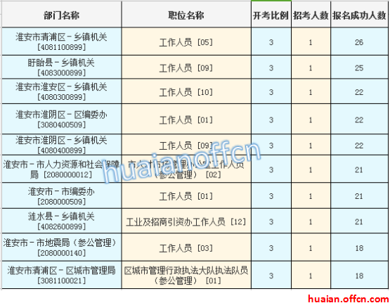淮安市考報(bào)名人數(shù)最多的十大職位