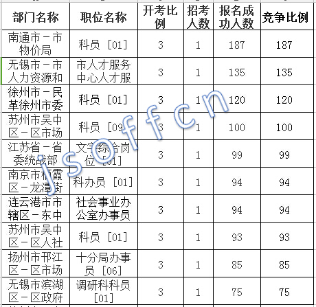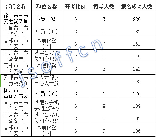 江蘇省報名人數(shù)最多十大崗位