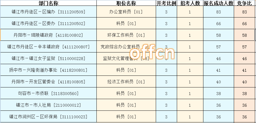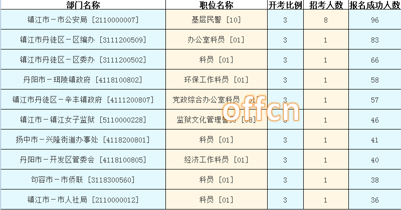 鎮(zhèn)江市報名競爭最激烈的十大職位