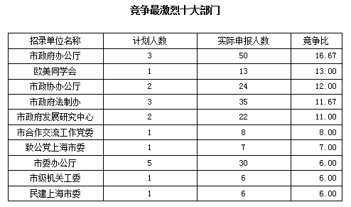 2016年上海市公務(wù)員考試職位報名第2日:267職位達(dá)到面試比例
