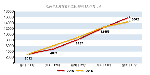 [19日11時(shí)]2016上海市公務(wù)員職位報(bào)名超1.6萬(wàn)人次申報(bào)