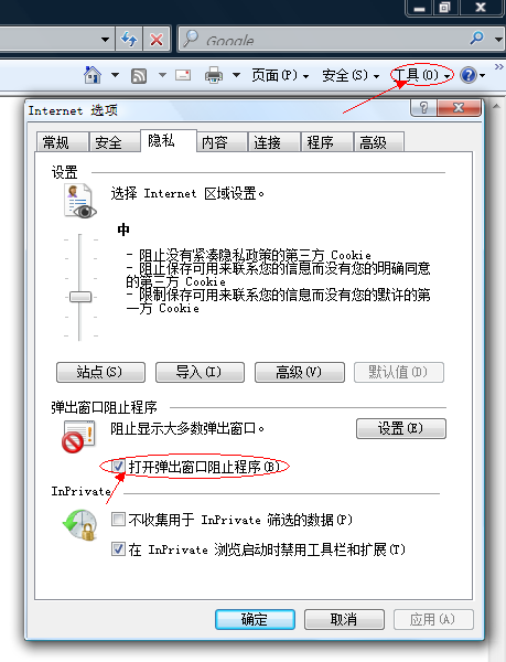 為了報(bào)名操作能夠順利進(jìn)行,請(qǐng)使用IE瀏覽器(Internet Explorer)。調(diào)整瀏覽器屬性,關(guān)閉彈出窗口阻止程序:打開瀏覽器,在“工具”菜單的“Internet選項(xiàng)”中選擇“隱私”選項(xiàng)卡,將“打開彈出窗口阻止程序”前面的勾取消,然后點(diǎn)【應(yīng)用】。