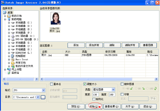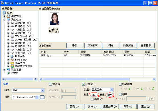 6、調(diào)整圖像大小,將其設(shè)置為130(寬度)×160(高度);