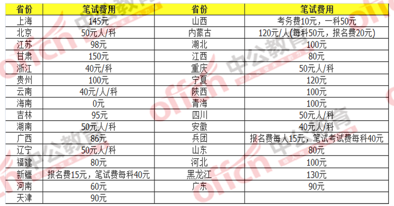2016公務(wù)員考試各地報(bào)名費(fèi)用一覽:看看哪個(gè)省花錢(qián)最少