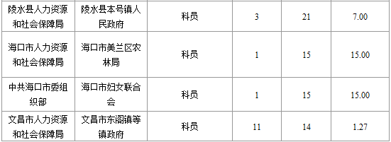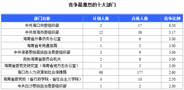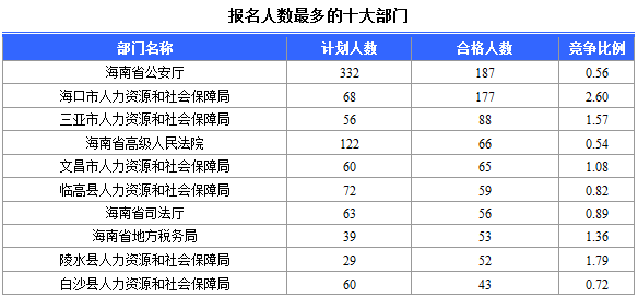 報(bào)名通過(guò)審核人數(shù)前十的職位主要集中在海南省高級(jí)人民法院、??谑腥肆Y源和社會(huì)局、海南省林業(yè)廳,具體信息如下: