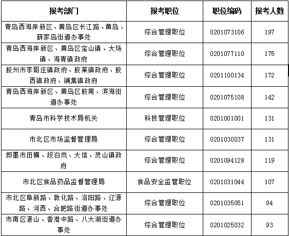報考人數(shù)前十職位: