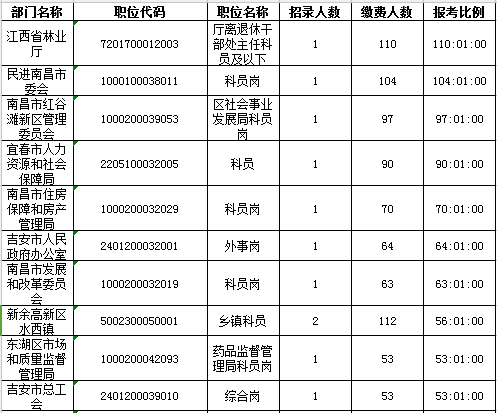 2016江西公務(wù)員報名人數(shù)達(dá)19291人,最熱職位110人報考