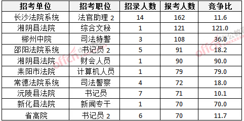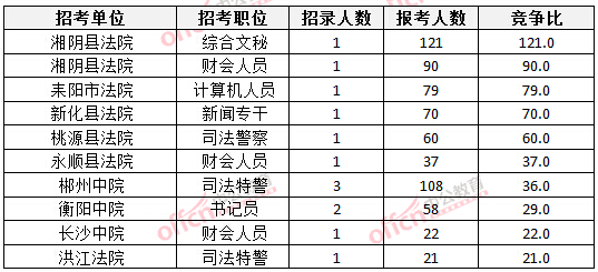2016年湖南法院報(bào)名人數(shù)為3217人,最熱職位競爭比例為121:1(3月26日)