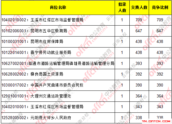 報(bào)名通過(guò)繳費(fèi)人數(shù)前十的職位