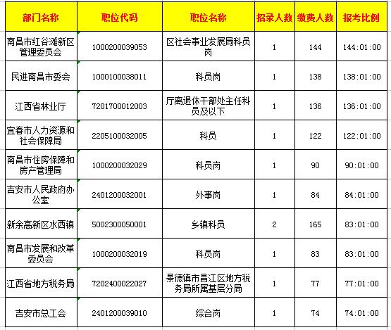 全省報考繳費人數(shù)排名前十的職位