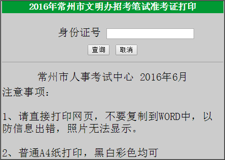 2016江蘇常州市文明辦招考筆試準考證打印入口