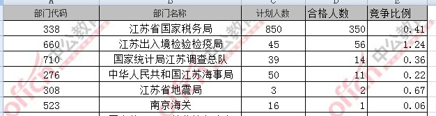 截止到15日16時,通過審核人數(shù)前三位的部門依次是:江蘇省國家稅務(wù)局、江蘇出入境檢驗檢疫局、國家統(tǒng)計局江蘇調(diào)查總隊,三部門通過審核總?cè)藬?shù)達408人,占通過審核總?cè)藬?shù)的68%。