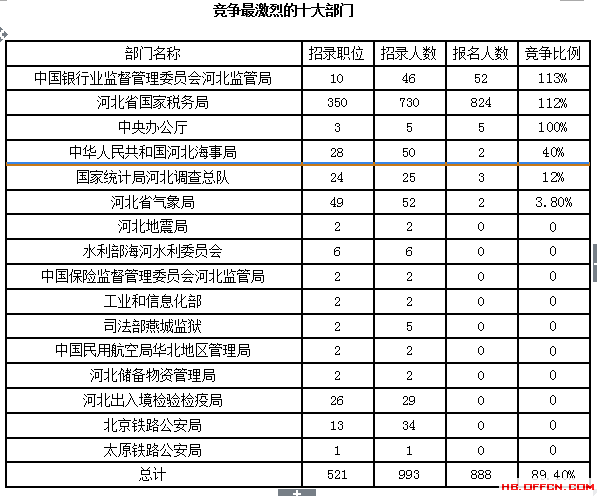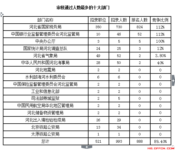 截至15日16時,據(jù)河北中公網(wǎng)校統(tǒng)計,2017國考招錄職位中工作地點在河北的職位通過審核總?cè)藬?shù)為888人,平均競爭比例為89:1 。