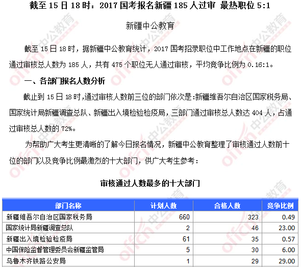 【截至15日16時(shí)】2017國(guó)考報(bào)名新疆185人過(guò)審 475個(gè)職位無(wú)人報(bào)考