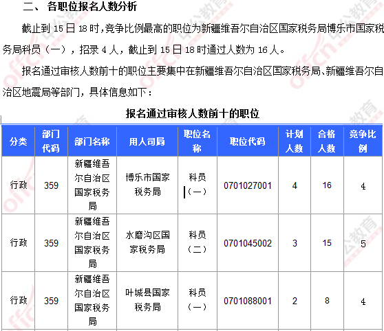 【截至15日16時】2017國考報(bào)名新疆185人過審 475個職位無人報(bào)考