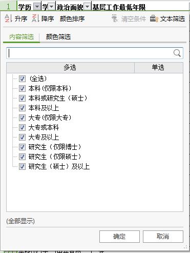學(xué)歷對(duì)于報(bào)名國(guó)考的各位考生是一條“硬杠”,因此及時(shí)篩選出與自己條件相符的職位能讓考生更方便的進(jìn)一步挑選職位。同樣對(duì)職位表中學(xué)歷要求一列進(jìn)行篩選,可以發(fā)現(xiàn)學(xué)歷要求主要包括大專、本科、研究生三個(gè)層次??忌趫?bào)考時(shí)要注意各學(xué)歷要求后面附帶的“僅限”和“及以上”兩種條件之間的區(qū)別,對(duì)比自身?xiàng)l件,謹(jǐn)慎報(bào)考。