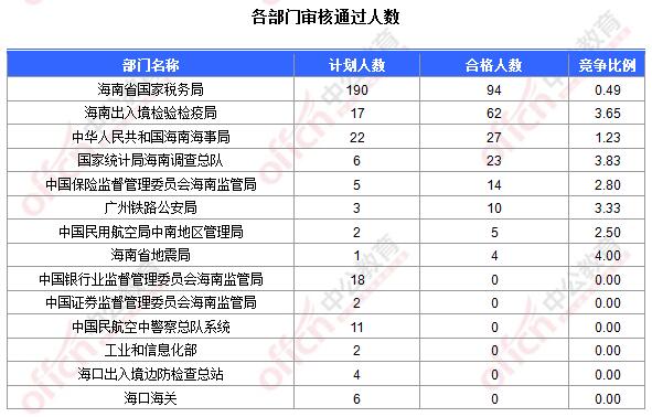 為幫助廣大考生更清晰的了解今日?qǐng)?bào)名情況,海南中公網(wǎng)校整理今天各部門的報(bào)名情況供廣大考生參考: