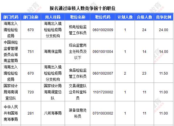 【截至16日8時(shí)】2017國(guó)考報(bào)名海南239人過審 競(jìng)爭(zhēng)比例已達(dá)24:1