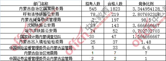為幫助廣大考生更清晰的了解今日報名情況,內(nèi)蒙古中公網(wǎng)校整理了審核通過人數(shù)前十位的部門,供廣大考生參考: