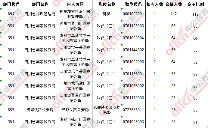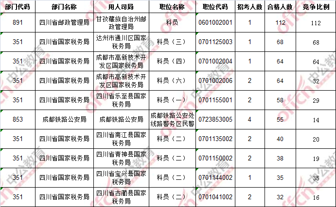 首日報名通過審核人數(shù)前十的職位主要集四川省國家稅務局等部門,具體信息如下: