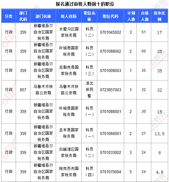 【截至16日16時(shí)】2017國(guó)考報(bào)名新疆1341人過(guò)審 最熱職位17:1