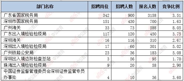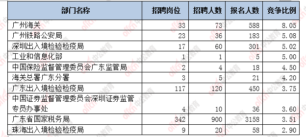 為幫助廣大考生更清晰的了解今日?qǐng)?bào)名情況,廣東中公網(wǎng)校整理了審核通過(guò)人數(shù)前十位的部門以及競(jìng)爭(zhēng)比例最激烈的十大部門,供廣大考生參考: