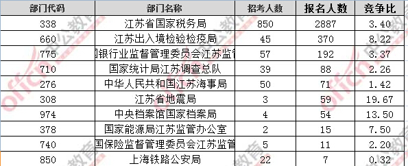 截止到17日8時(shí),通過(guò)審核人數(shù)前三位的部門依次是:江蘇省國(guó)家稅務(wù)局、江蘇出入境檢驗(yàn)檢疫局、中國(guó)銀行業(yè)監(jiān)督管理委員會(huì)江蘇監(jiān)管局,三部門通過(guò)審核總?cè)藬?shù)達(dá)3449人,占通過(guò)審核總?cè)藬?shù)的91.3%。