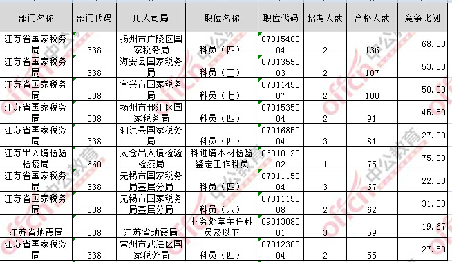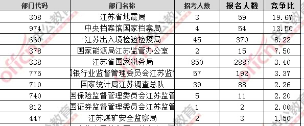 報(bào)名通過(guò)審核人數(shù)前十的職位主要集中在江蘇省國(guó)家稅務(wù)局、江蘇省地震局,具體信息如下: