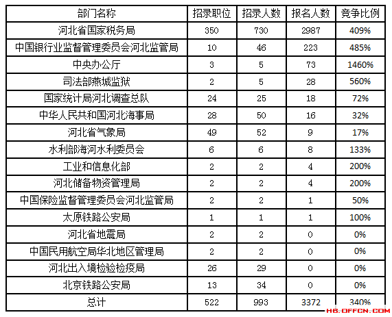 為幫助廣大考生更清晰的了解今日報名情況,河北中公教育整理了各部門審核通過人數(shù)以及競爭比例,供廣大考生參考:
