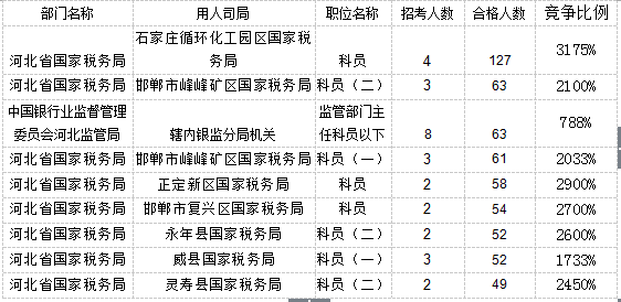報(bào)名通過審核人數(shù)前十的職位主要集中在河北省國家稅務(wù)局、國家統(tǒng)計(jì)局河北調(diào)查總隊(duì)、中央辦公廳等部門,具體信息如下:
